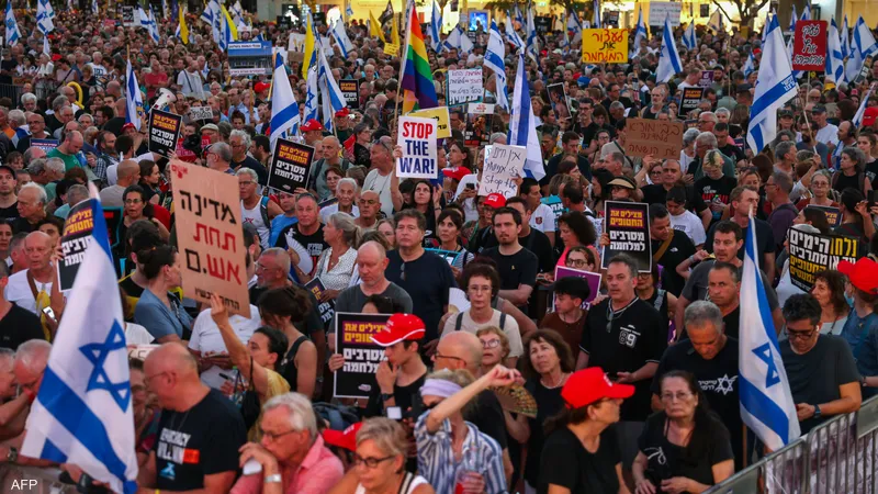 وتشهد تل أبيب مظاهرات أسبوعية متواصلة، تزداد أعداد المشاركين فيها مع مرور الوقت، مطالبة الحكومة بالتفاوض على وقف إطلاق النار مقابل الإفراج عن المحتجزين، وتشير استطلاعات الرأي إلى أن جزءًا كبيرًا من الشارع الإسرائيلي لم يعد يؤيد استمرار الحرب.