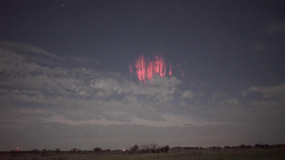 شهدت سماء الأرض خلال الأيام الماضية مشهدًا استثنائيًا بدا وكأنه مقتطع من فيلم خيال علمي، بعدما التقط مراقبون فوق إحدى العواصف الرعدية أضواء حمراء غامضة ترسم ملامح شكل يشبه قنديل بحر عملاق متوهّج في الفضاء، وفقًا لصحيفة نيويورك بوست.