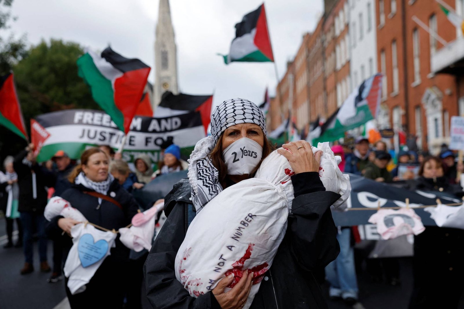 وفي دبلن شارك آلاف المحتجين في وقفة أمام البرلمان لإحياء ذكرى مرور عامين على اندلاع الحرب في غزة ولفت الانتباه إلى الأوضاع الإنسانية.