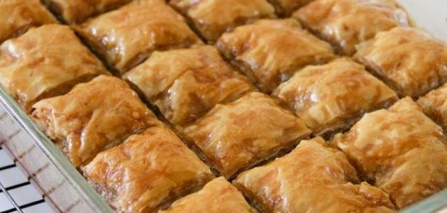 تُلف الأوراق المتبقية على الحشوة أو تُغطي بشكل طبقات متقابلة، مع دهن الوجه بالزبدة والبيضة المخفوقة لإضفاء لون ذهبي جميل عند الخبز. -