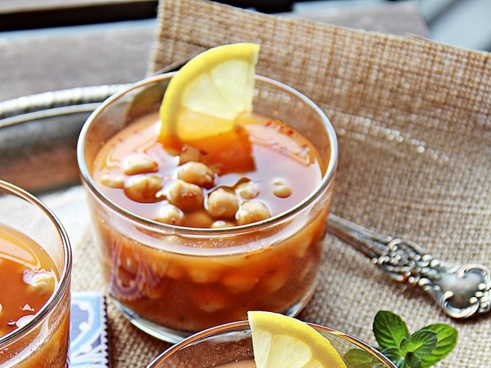4. يُقدَّم المشروب ساخنًا في أكواب زجاجية، ويُضاف إليه عصير الليمون والشطة حسب الرغبة.