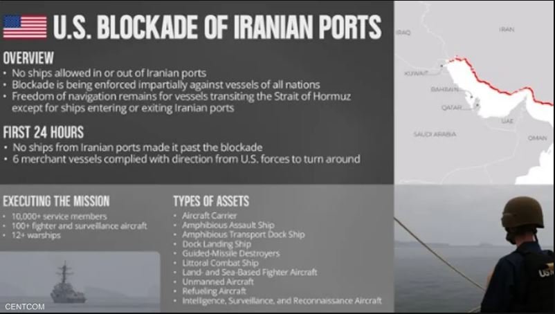 وأشارت القيادة المركزية إلى أن القوات الأميركية تمكنت خلال الـ24 ساعة الأولى من تنفيذ الحصار من منع أي محاولات لاختراق النطاق الأمني المحدد.