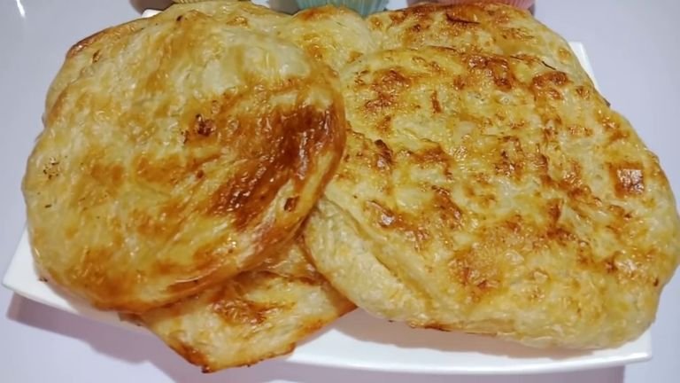 تُقسَّم العجينة إلى كرات صغيرة، تُترك لترتاح نصف ساعة، ثم تُفرد كل كرة على سطح مدهون بالسمن حتى تصبح شفافة تقريبًا.