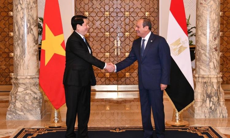 وكان الرئيس المصري عبد الفتاح السيسي، قد استقبل نظيره الفيتنامي في وقت سابق من اليوم في قصر الاتحادية، حيث جرت مراسم استقبال رسمية، تلاها جلسة مباحثات موسعة تناولت العلاقات الثنائية، بالإضافة إلى التشاور حول عدد من القضايا الإقليمية والدولية ذات الاهتمام المشترك.