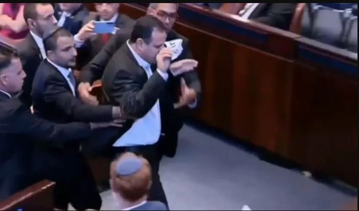 وأظهرت لقطات مصورة من داخل القاعة رئيس الكنيست يطرق بمطرقته بقوة في محاولة لوقف الفوضى، فيما تحرك رجال الأمن بسرعة لإخراج النائبين من الجلسة.